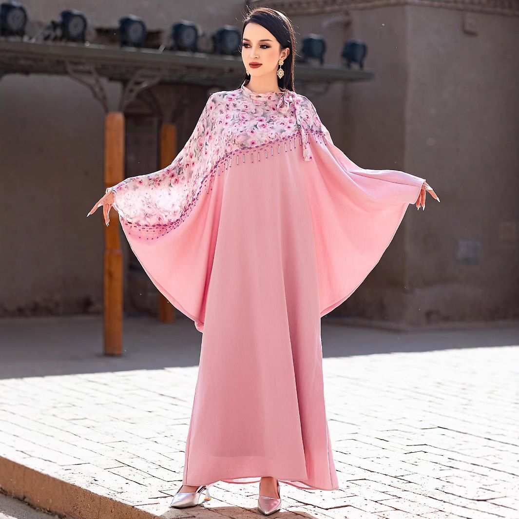 + Free ShippingRose Pink Chiffon Cape Style Abaya